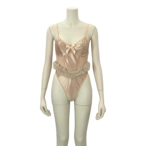 甘くて挑発的な誘惑に魅せられるバニーガールセクシーコスプレ(SEXYCOSPLAY)。シャンパンゴールドのカラーがより肌に馴染み、光沢あるサテンと透け感のあるチュールの切り替えや、バストをふっくら包む縫製が立体的でデコルテをより一層美しく魅せる。ヒップを露出するほどの超ハイレグがヒップから脚にかけてのラインを強調し、セクシーな曲線美を際立たせます。胸元のリボンとウエストにあしらわれたふわふわのファーが、無邪気さと官能の絶妙なバランスを生み、ヒップに向け放射状につたう3本のストリングがバックスタイルをより情欲的に。肌と透け感のコントラストが抗いがたい誘惑を演出します。