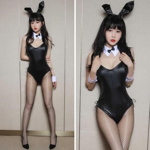 レザー調でちょっとクールなバニーガール風セクシーコスプレ(SEXYCOSPLAY)。伸縮性の高いマットなレザー調の生地がボディに心地よくフィットしメリハリのあるボディーメイクをしてくれます。ブラカップ付き、またクリアストラップで長さ調節もできて理想のバストメイクも。ちょっとハードな印象とは裏腹にカチューシャや尻尾であざと可愛く着飾ることも出来ちゃいます♪クロッチはスナップボタンで着脱をサポートします。お好みの網タイツやニーハイをコーディネートすれば違った雰囲気も楽しめます。