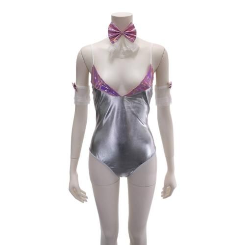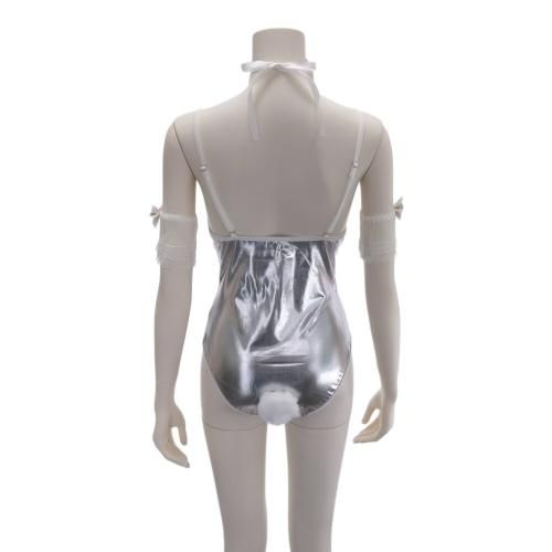 メタリックな個性派バニーガール風セクシーコスプレ(SEXYCOSPLAY)。光沢感のあるレザータッチの生地感にパートナーも思わず触れたくなる衝動に。ボディラインをくっきりと表すテディは艶めかしい輝きを放ちます。クロッチはスナップボタンで開閉可能。ディテールにもこだわったカチューシャやアームリングほか付属アイテムも着けて非日常的なバニーガールを楽しんで。
