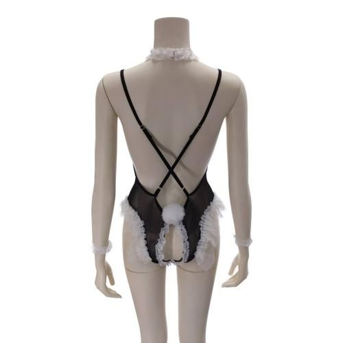 可愛い姿につい虐めたくなるバニーガールセクシーコスプレ(SEXYCOSPLAY)。シアー素材のスケスケ感とオープンクロッチがなんとも堪らない。耳のカチューシャと丸くフワフワの尻尾を付ければ可愛すぎて虐めたくなってしまいそう。縁にフリルレースをしらい、バストの編上げが更に高揚感を高めてくれます。