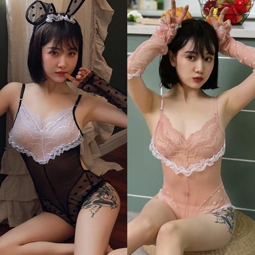 レースとドット柄がフェミニンさを演出しバックスタイルが刺激的なバニーガール風セクシーコスプレ(SEXYCOSPLAY)。テディのバスト部分はラッセルレースの透け感と、ストレッチの効いたドットメッシュが素肌を優しくブラインドして全身から大人の可愛らしさを放ちます。クロッチからヒップまで大きく開いたオープンデザインのカットは、バックスタイルからの破壊力も抜群です。可愛らしい見た目から想像できないセクシーな仕立てのギャップにパートナーもノックアウト間違いなし♪背中側のホックは2列3段調節である程度のサイズ調整が可能。