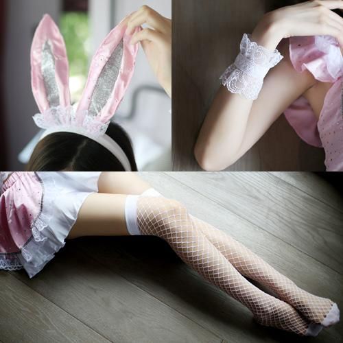 愛らしさが癖になるバニーガール風セクシーコスプレ(SEXYCOSPLAY)。淡いピンクが可愛らしいバニーガールは、アイドル風のフリフリデザインでさらに甘さをプラス♪たっぷりのフリルやレースなど、女の子が大好きなものだけを集めた無敵のエロカワデザインです♪トップスは3段3列のホック留めです。