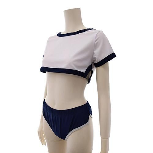 斬新なミニ丈にカットを入れ露出を高めた体操着ブルマ風セクシーコスプレ(SEXYCOSPLAY)。青春時代を思い出す体操着をモチーフにした体操着風のコスプレです。伸縮性のある生地を使用しストレッチのきいたトップスはバストラインがギリギリ隠れる丈感にし、サイドに入れたカットが動きやすさをプラスしカットから覗くバストに目を離せません♪ブルマはチーキータイプにスリットが入った健康的な色気に見えるデザインに。ブルマのウエストには平ゴムを使用しているので着苦しさを軽減します。ミニ丈でボディラインが露になり曲線美をアピールしたい時にピッタリです。