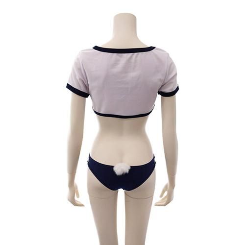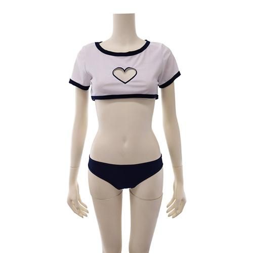 バストのハートカットが視線を集中させるキュートさとスポーティーさが際立つ体操着&ブルマ風セクシーコスプレ(SEXYCOSPLAY)。伸縮性が高い生地を使用したリンガーデザインのミニ丈トップスは視線をバストに集めるハート型のくり抜きがキュートかつセクシーなデザインです。ブルマはビキニタイプで白いスリーラインが爽やかさを引き出し、ヒップにはうさぎを連想させるボブテイルがついて、スポーティコスチュームに可愛いさをプラス。