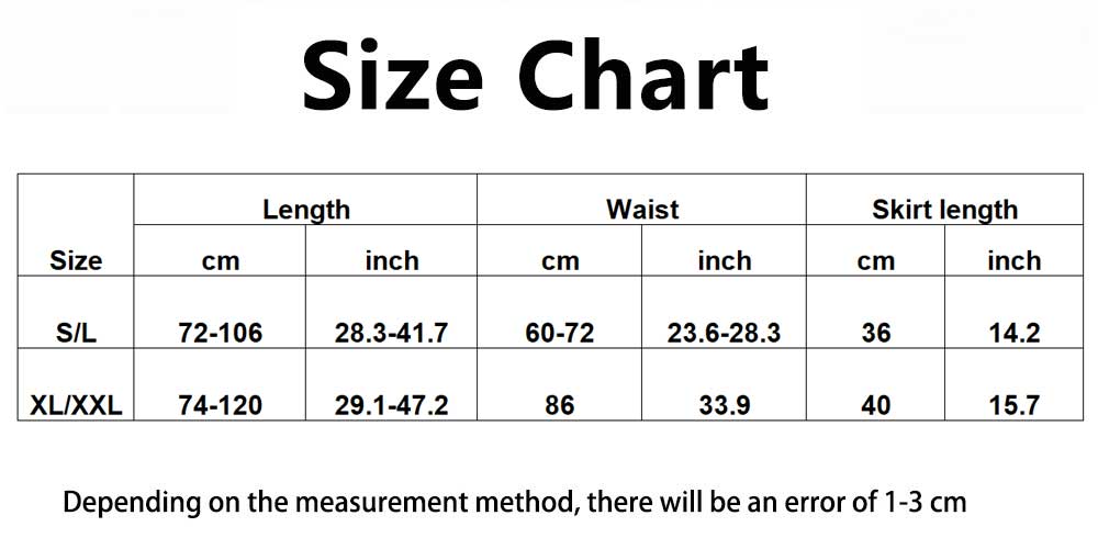 Product Measurement: Bust: 28.3in-41.7in, Waist: 23.6in-28.3in, Skirt Length: 14.1in, Recommended weight for 88-137lb