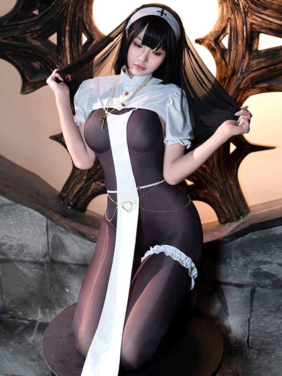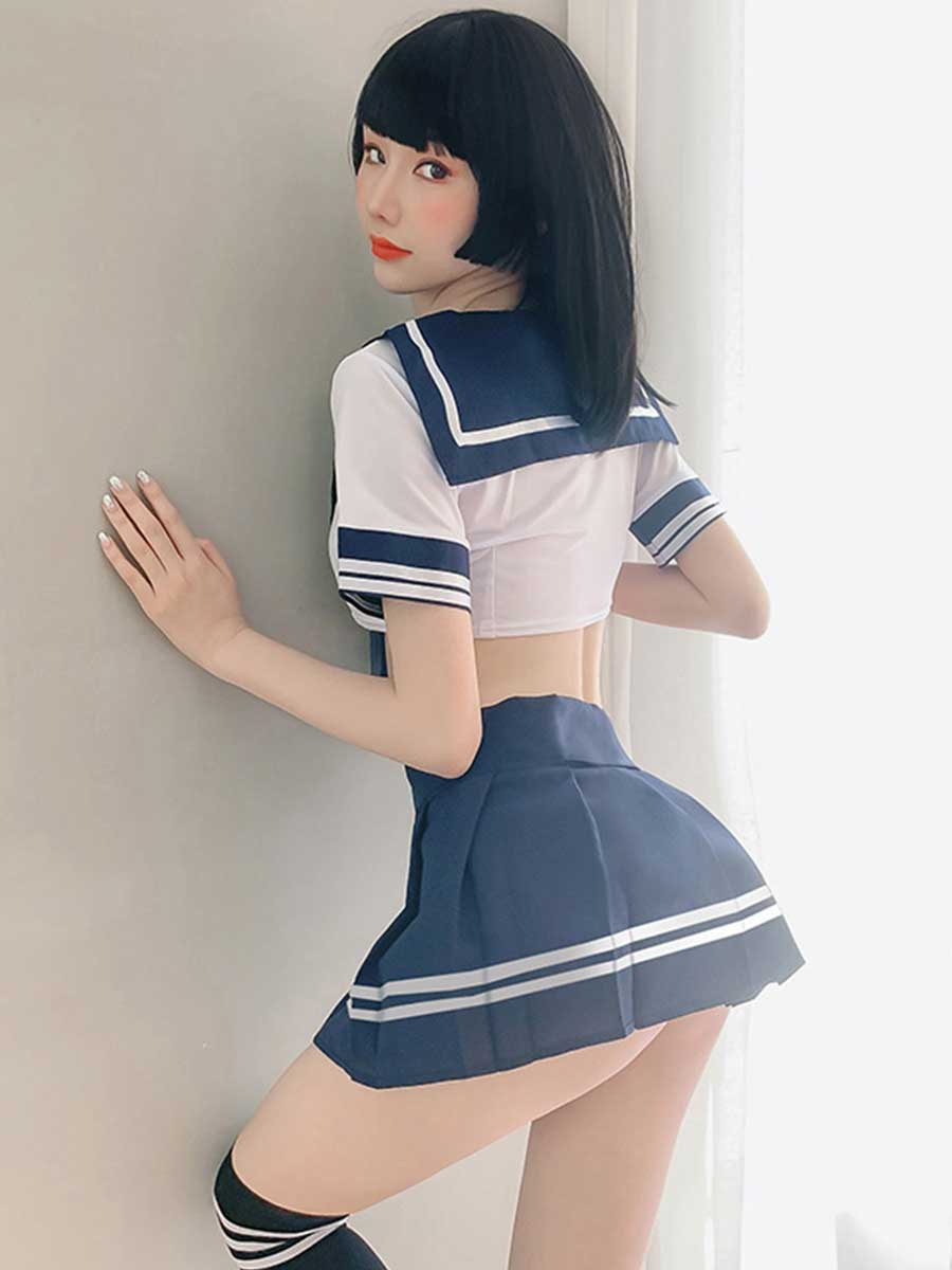 Package Including: 1x top+1x skirt+1x headpiece+1x belt+2x thigh ring+1x panty+1 pair of stocking