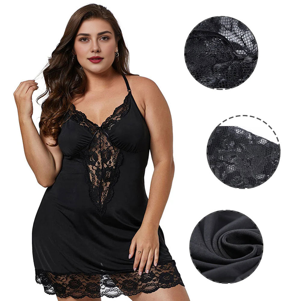 Women Plus Size Lace Modal Sleepwear V-Neck Full Slip Sleep Babydoll.the deep V neckline adds a modern and sexy edge to the piece, perfect for those who want to show off their curves and feel confident in their own skin.