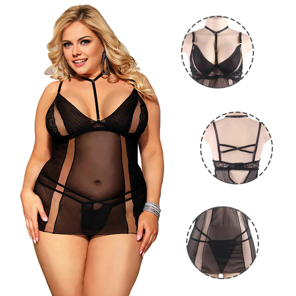 Women Plus Size Black Lace Halter Sexy Babydoll Mesh Fabric - Underwear is made of lightweight and breathable mesh fabric for comfort and relaxation. This fabric is perfect for women who want to feel comfortable and look sexy at the same time.