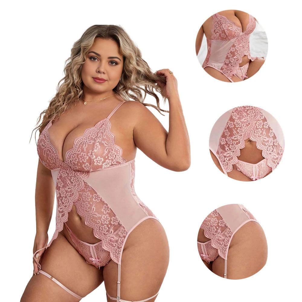 Women Plus Size Exquisite Lace Garter Floral Lace Babydoll