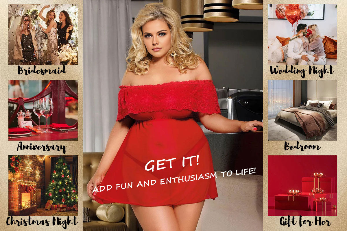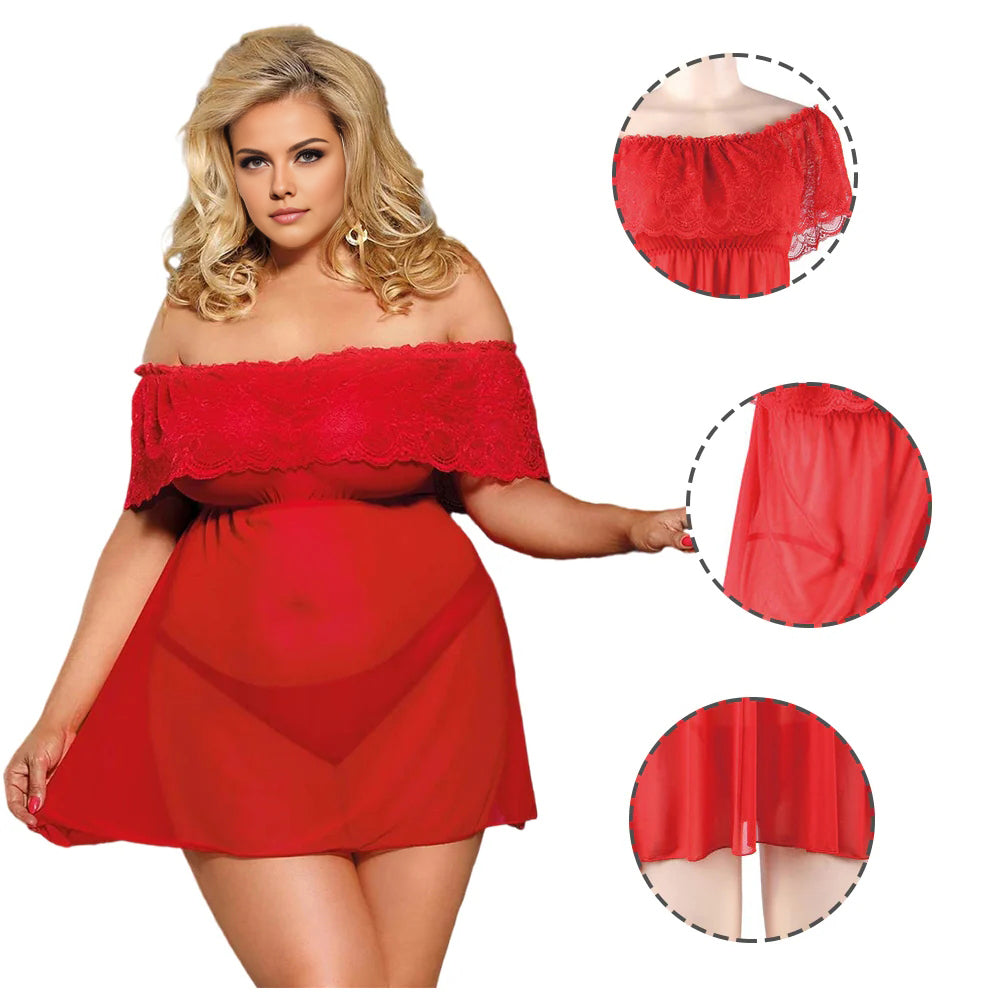 【Tags】Babydoll | Women Babydoll Red | Women Plus Size Lace Off Babydoll | Women Nightgown Dress