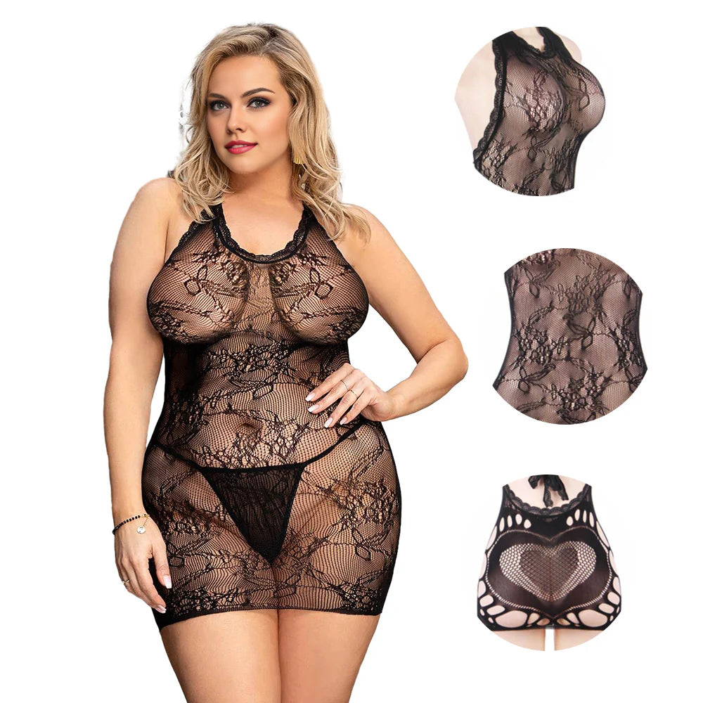 Women Plus Size Mesh Hollow-Out Backless Mini Chemise Dress