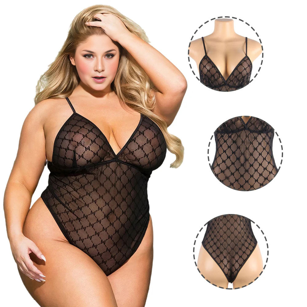 Women Plus Size Balck Mesh Stitching Teddy Bodysuit is part of the Plus Size Bodysuit. Let you enjoy all-day comfort. It's perfect for hot summer days because the mesh fabric allows your skin to breathe so you don't feel suffocated. Whether you're having a sleepover on the town or staying home for a romantic evening, this sexy teddy is sure to make you feel comfortable and confident.