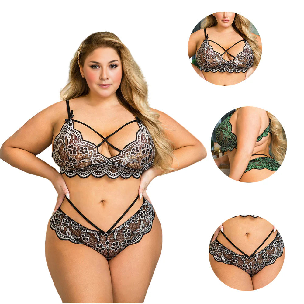 Women Plus Size Floral Embroidery Sexy Lingerie Bra Set is part of the Plus Size Bra Set. A bra set is the perfect choice for any woman who wants to feel confident and sexy. So why wait? Treat yourself to this premium underwear today and experience the ultimate in support, shaping and lifting.