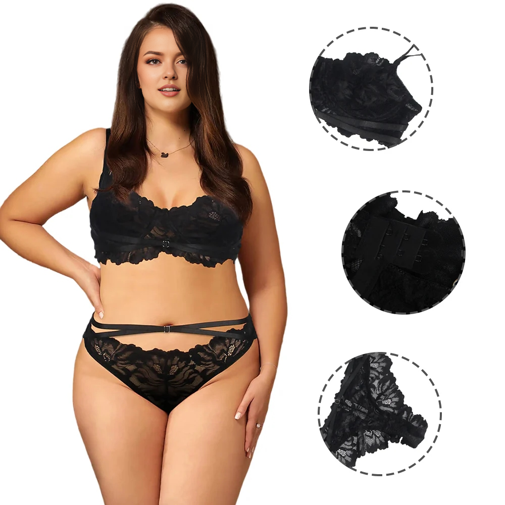 Women Plus Size Floral Lace Underwire Bra Set.Designed with underwire to provide excellent support and shape to your bust. This design enhances your natural curves and keeps you comfortable and secure throughout the day. The back closure provides the perfect fit, while the adjustable chest strap allows you to customize the fit to your body shape.
