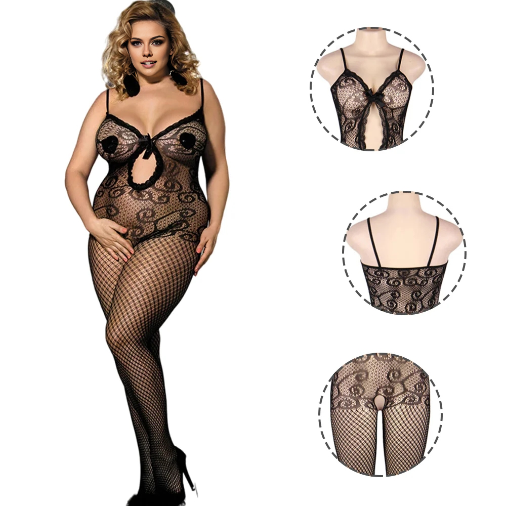Women Plus Size Black Mesh Pothole and Fishnet Bodystocking.These body socks are made of high-quality materials that will last for a long time. The fabric is soft, breathable, and comfortable so you can wear it for extended periods of time without feeling restrictive or uncomfortable. Covers the entire body, perfect for women who want to feel confident and sexy while covering imperfections.