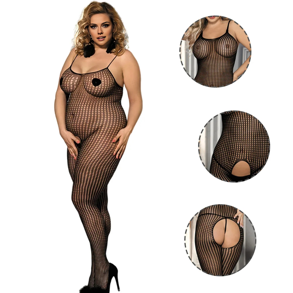 Women Plus Size Fishnet Bodystocking with Open Back.These body socks are made of high-quality materials that will last for a long time. The fabric is soft, breathable, and comfortable so you can wear it for extended periods of time without feeling restrictive or uncomfortable. Covers the entire body, perfect for women who want to feel confident and sexy while covering imperfections.