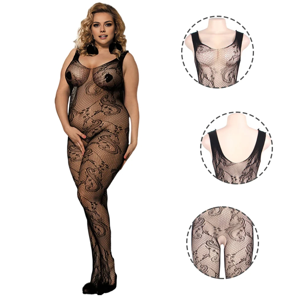 Women Plus Size Fishnet Crotchless Bodystocking with Lacing.These body socks are made of high-quality materials that will last for a long time. The fabric is soft, breathable, and comfortable so you can wear it for extended periods of time without feeling restrictive or uncomfortable. Covers the entire body, perfect for women who want to feel confident and sexy while covering imperfections.
