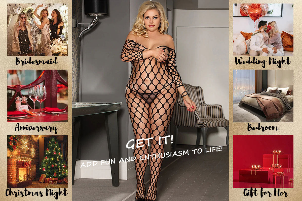 Women Plus Size Hollow Black Off Shoulder Bodystocking.These body socks are made of high-quality materials that will last for a long time. The fabric is soft, breathable, and comfortable so you can wear it for extended periods of time without feeling restrictive or uncomfortable. Covers the entire body, perfect for women who want to feel confident and sexy while covering imperfections.