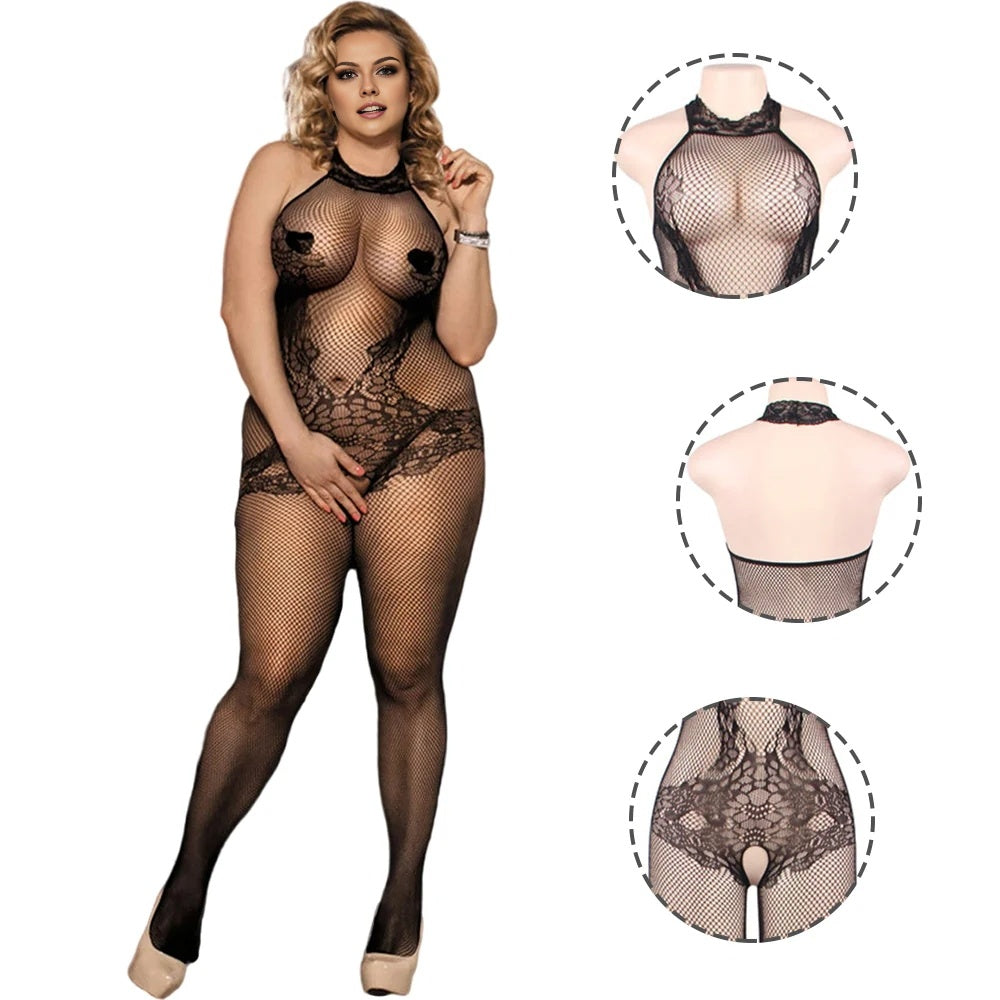 Women Plus Size Lace and Fishnet Turtleneck Bodystocking.These body socks are made of high-quality materials that will last for a long time. The fabric is soft, breathable, and comfortable so you can wear it for extended periods of time without feeling restrictive or uncomfortable. Covers the entire body, perfect for women who want to feel confident and sexy while covering imperfections.