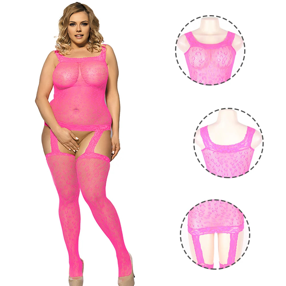 Women Plus Size Leopard Patterned Garter Pink Bodystocking.These body socks are made of high-quality materials that will last for a long time. The fabric is soft, breathable, and comfortable so you can wear it for extended periods of time without feeling restrictive or uncomfortable. Covers the entire body, perfect for women who want to feel confident and sexy while covering imperfections.