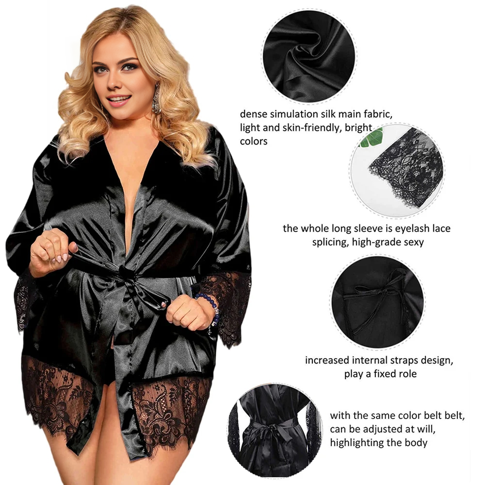 【Tags】Robes | Women Robes Black | Women Plus Size High Quality | Women Floral Lace Robe