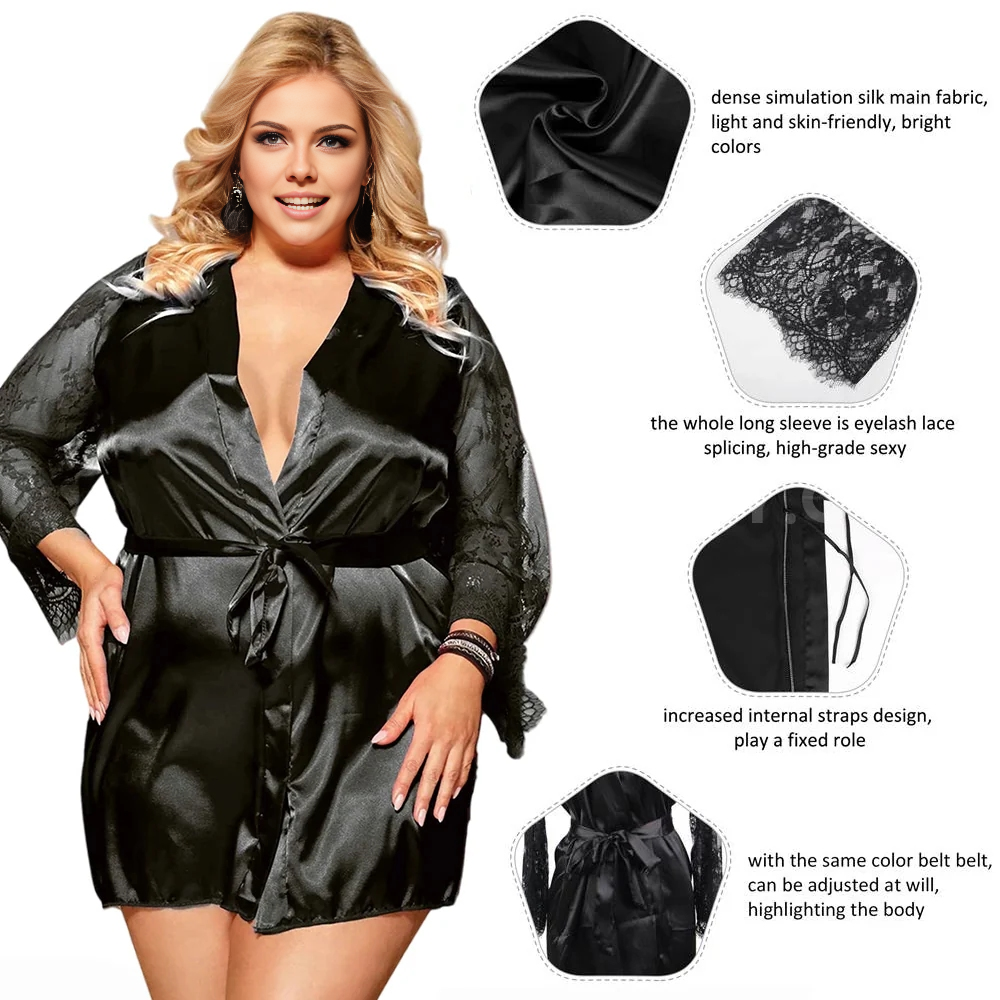 【Tags】Robes | Women Robes Black | Women Plus Size High Quality | Women Lace Pajamas