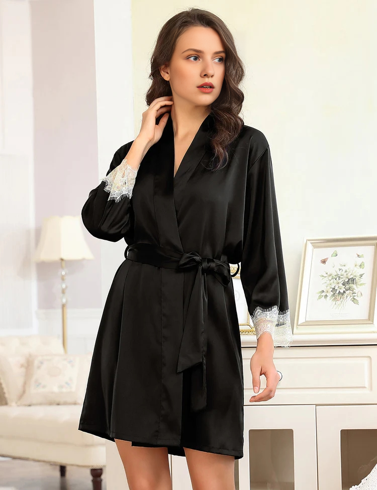 プラスサイズVネックランジェリードレスは、プラスサイズローブコレクションの一部です。ファッション性・機能性・快適性を兼ね備えた理想的な一着で、最高のナイトウェアを求める女性に最適です。贅沢な生地、エレガントなデザイン、多様なスタイル、豊富なカラーバリエーション、そして快適なフィット感が、このパジャマセットを際立たせます。