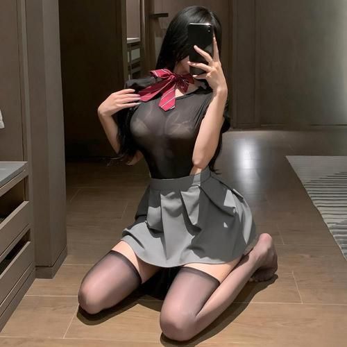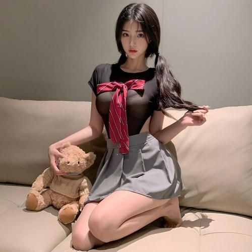 挑発的なスクールガール風セクシーコスプレ(SEXYCOSPLAY)。シースルーから透けた肌、カットアウトされたサイドウエストからはヘルシーな素肌が覗き、ヒラリと揺れるプリーツスカートは太ももが大きく露出するほどのミニ丈デザイン。そして、あどけなさの残るスカートを脱ぐと、ボディラインが強調された超ハイレグの大胆セクシーなテディ姿に。エンジのネクタイは身に着けるのはもちろん、目隠しとして視界の自由を奪ったり、手首などを縛って拘束プレイにも♪テディはクロッチ部分に2列3段のホック付き。スカートはウエストにマジックテープを使用し、ムードを壊すことなく簡単脱着が可能です。