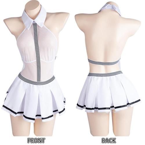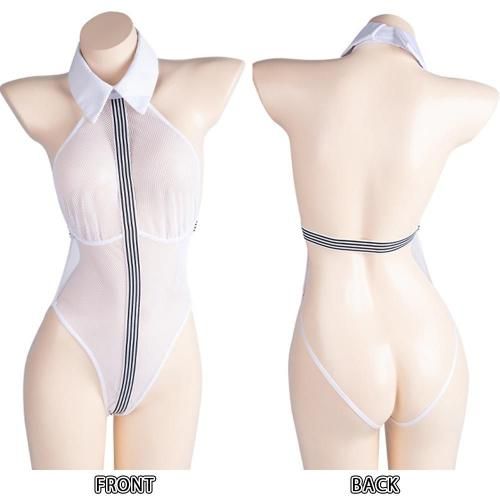 メッシュ越しに見える甘い罠に溺れる2WAY学生服風セクシーコスプレ(SEXYCOSPLAY)。清潔感のあるホワイトと、ブラックのストライプがアクセントのスポーティなスクールガールコスは、襟付きのテディにフロントストライプが施されており、縦のラインを強調。網目状メッシュ素材で素肌が透け、大胆なクロッチレスで更にセクシーな魅力を引き立てます。また、テディとプリーツスカートを組み合わせることで、異なるスタイルを楽しめる2WAY仕様♪気分やシーンに合わせて着こなしを変えることができます。制服が持つ「純真さ」と、そこから垣間見える「官能性」の際どいバランスの魅力を多角的に引き出します。