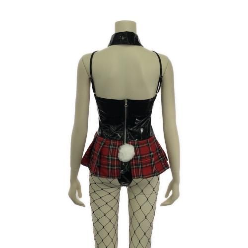 ボンテージの中に幼さが残るコケットリーな学生服風セクシーコスプレ(SEXYCOSPLAY)。刺激的なボンテージの学生服風デザインが幼さとセクシーの二面性を持ち、背徳感と興奮が頭の中を駆け巡る☆レースアップがバストを強調させ、PUレザーの艶感がボディに陰影をつけることでよりエロティック。バックスタイルはバニー要素のあるフワフワ尻尾がパートナーをキュンとさせ、セットの網タイツがさらに艶っぽいイイとこどりコスプレです♪